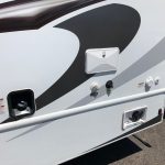 Upgraded 400W roof-mounted solar panel to power the fridge • Additional solar connection port for portable panels • LP QuickConnect to hook up gas BBQ • 15′ power patio awning w/ LED light strip • LED ceiling lights • USB charging stations throughout • One-piece ThermoFoil countertop • Recessed 3-burger range • Microwave • Childseat tether at forward facing dinette seatbench • 80″ residential bed length • Cabover bunk with ladder and child-safety net • 32″ living room TV • HDMI connector • 13.5BTU roof-mounted A/C • Passenger swivel seat • Large rear warehouse storage compartment (mini toy hauler) • 5,000lbs tow hitch • 4kW ONAN generator • Upgraded sideview mirrors • Back-up monitor/camera • External shower • Heated holding tanks